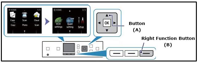 1. Press the [Home] button (A) on the printer.
