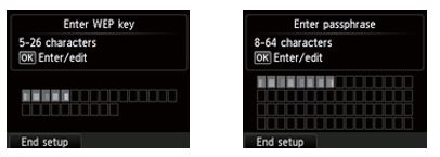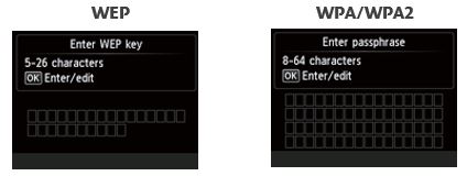 One of the screens below will be displayed on the printer, depending on which security method your access point is using.