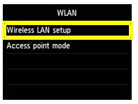 1. When the screen below appears select [Wireless LAN setup] and press the [OK] button.