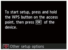 1. When the screen below appears press and hold the [WPS] button on your access point for approximately 5 seconds, then release.