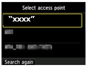 If you cannot see your network listed, then press the left function button to select [Search again].