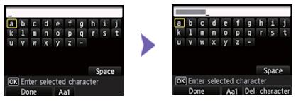 You can enter characters when the keyboard is displayed on the printer’s LCD. Follow the procedure below.